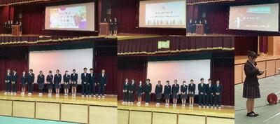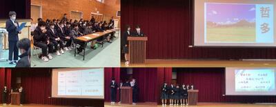 12月12日(金)、お世話になった3名をご招待し、各学年から選ばれた次の生徒が、本校体育館でそれぞれのテーマに沿って発表を行いました。